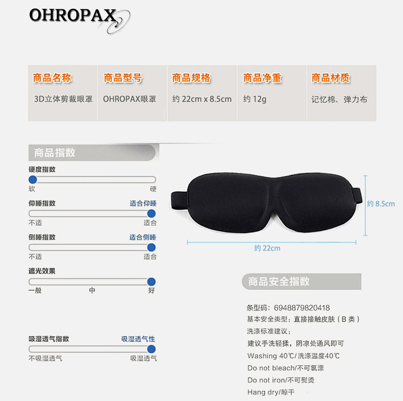 OHROPAX遮光睡眠眼罩